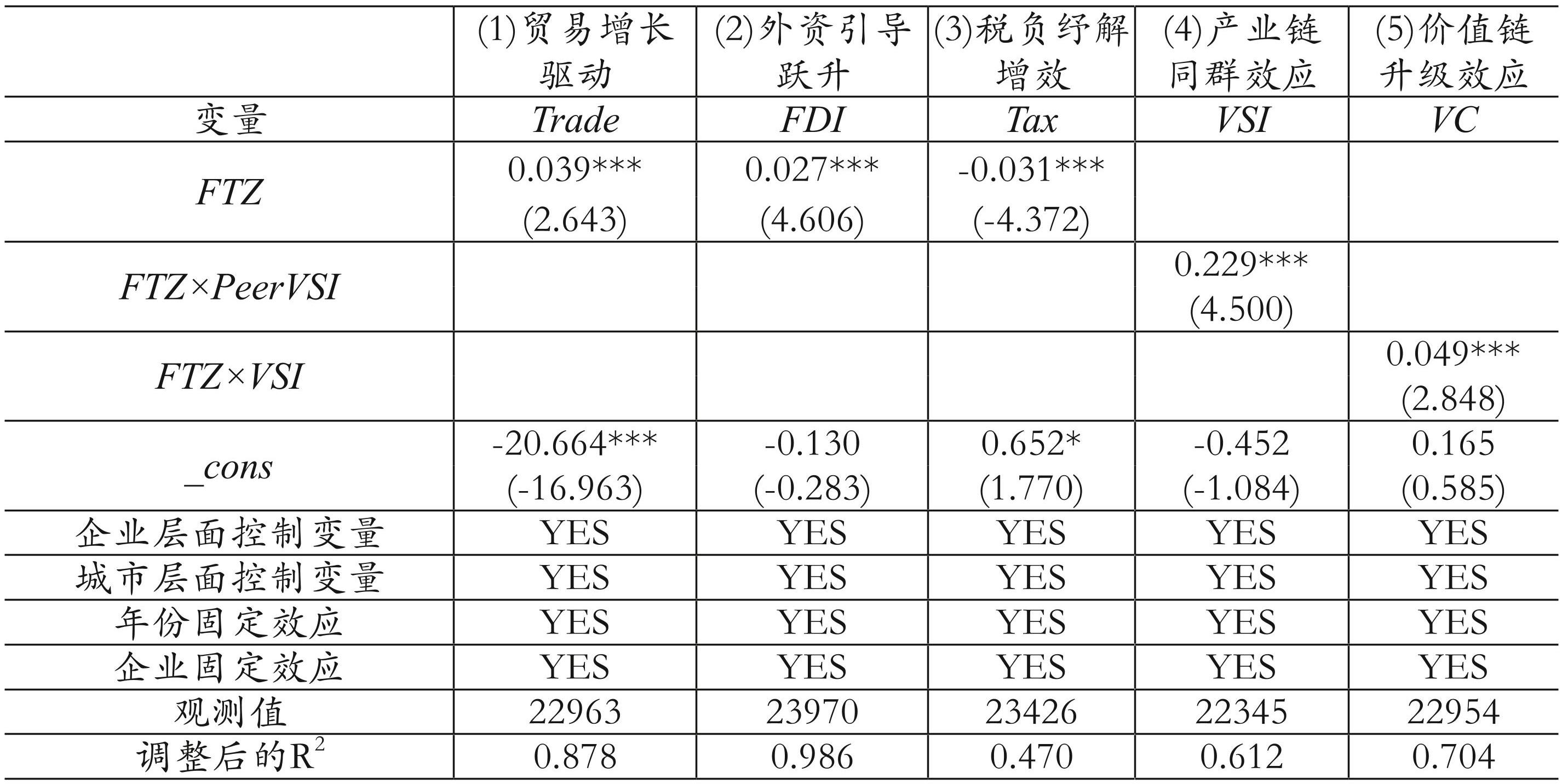 式(2)中,Mec表示机制变量(贸易增长驱动、外资引导跃升、税负纾解增效),β2表示自贸区建设对机制变量的影响程度,其余变量与上文一致。