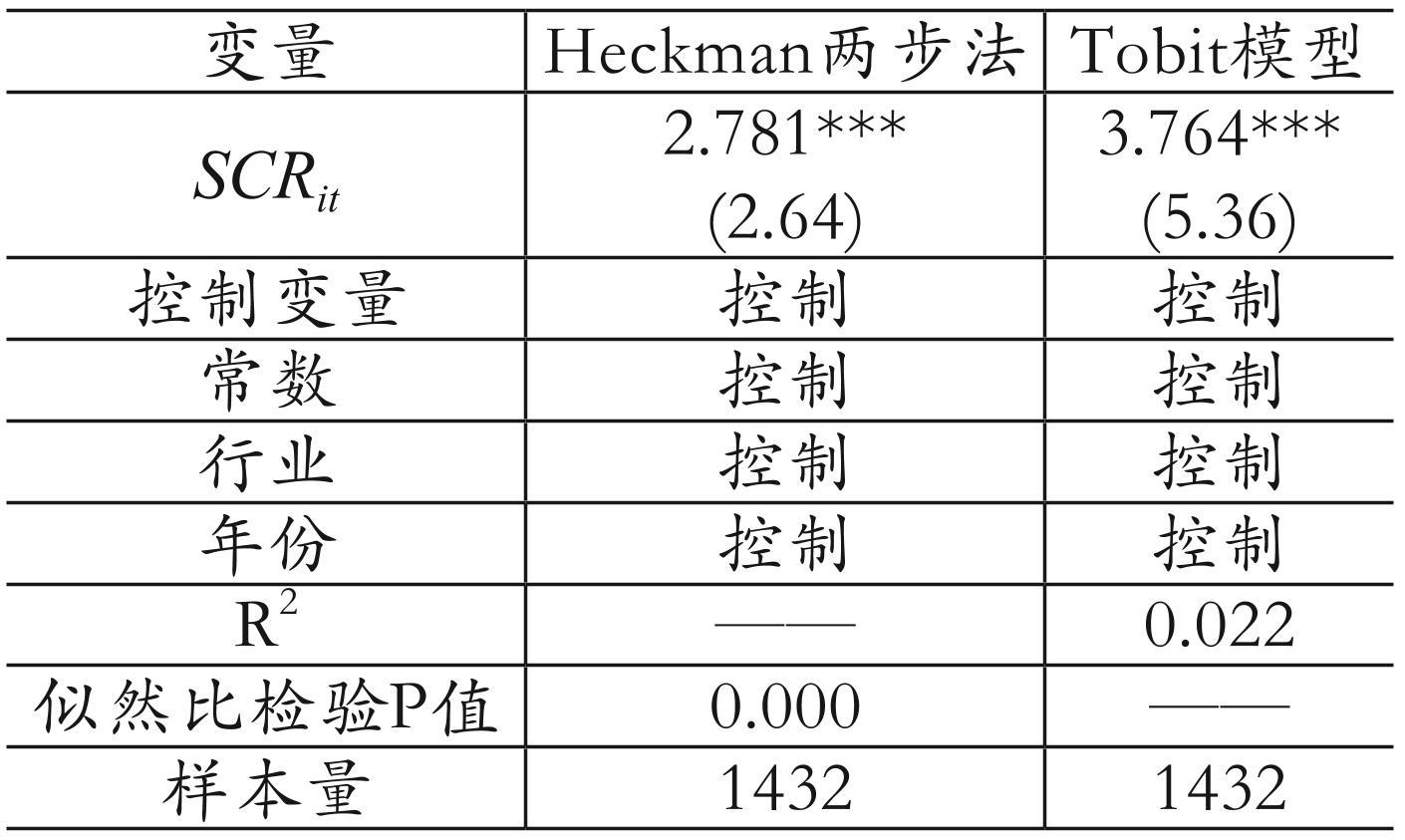 由于并非所有企业均具有披露其对外投资数据的意愿或能力,因此可能导致样本选择的非随机性,从而使得潜在的样本存在自选择偏差的问题。本文将基准模型的控制变量与行业、年份虚变量作为协变量,将企业年龄(对数值)、高管是否具有海外背景作为虚拟变量,人均GDP(对数值)作为选择变量,进行Heckman两步法估计。结果见表5第1列,供应链韧性的回归系数依然显著为正,表明在修正样本自选择偏差后,供应链韧性对企业对外直接投资仍具有显著的正向影响。此外,本文将对外直接投资缺失的样本赋值为0,并采用 Tobit模型重新进行回归分析,结果见表5第2列。供应链韧性指标的系数依然显著为正,与基准模型的结果一致。