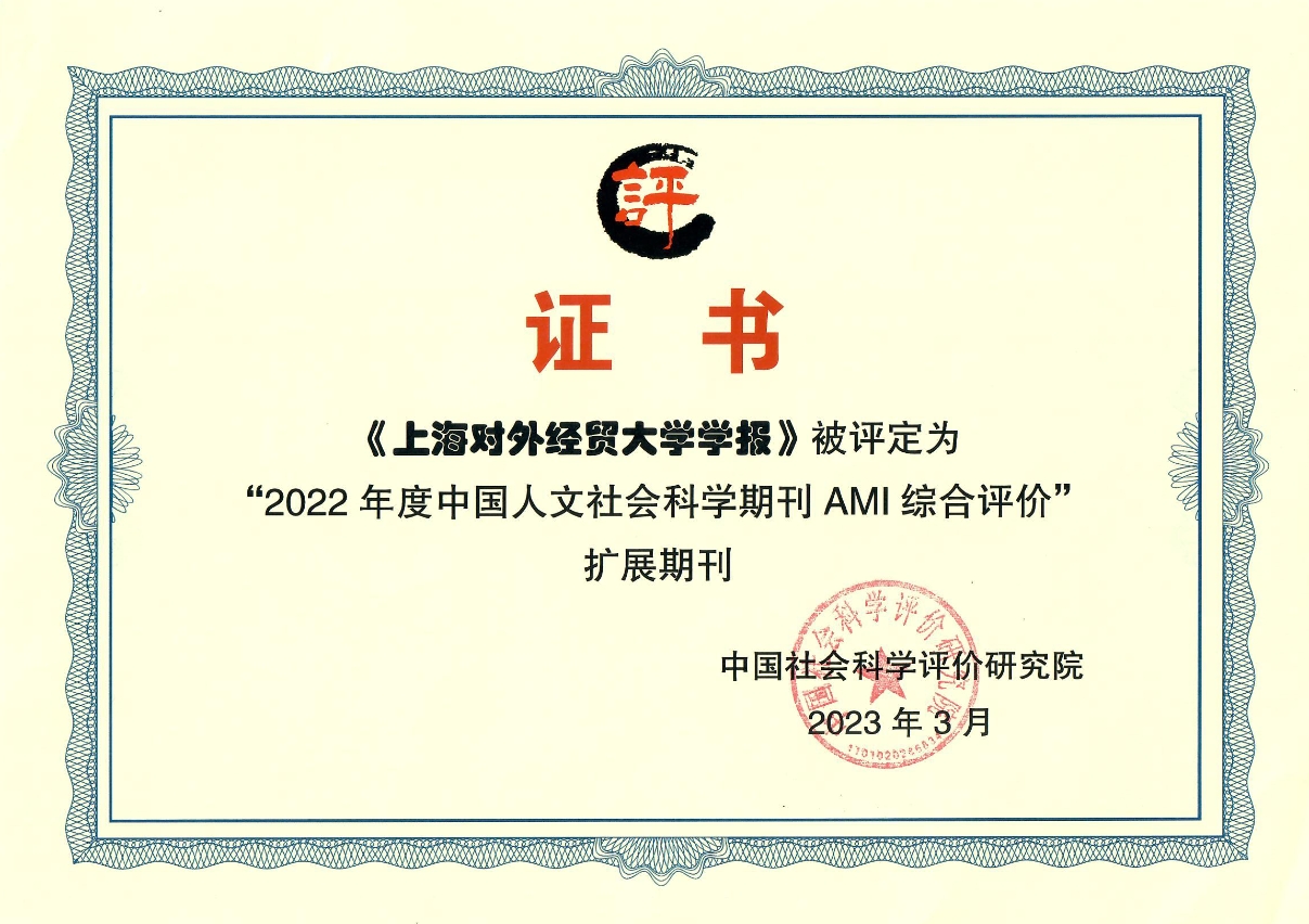 《上海对外经贸大学学报》2016年首次进入中国社会科学评价研究院《中国人文社会科学期刊AMI综合评价报告(2016年)》,2018年和2022年再度进入A刊来源期刊(2018年版,2022年版)。
